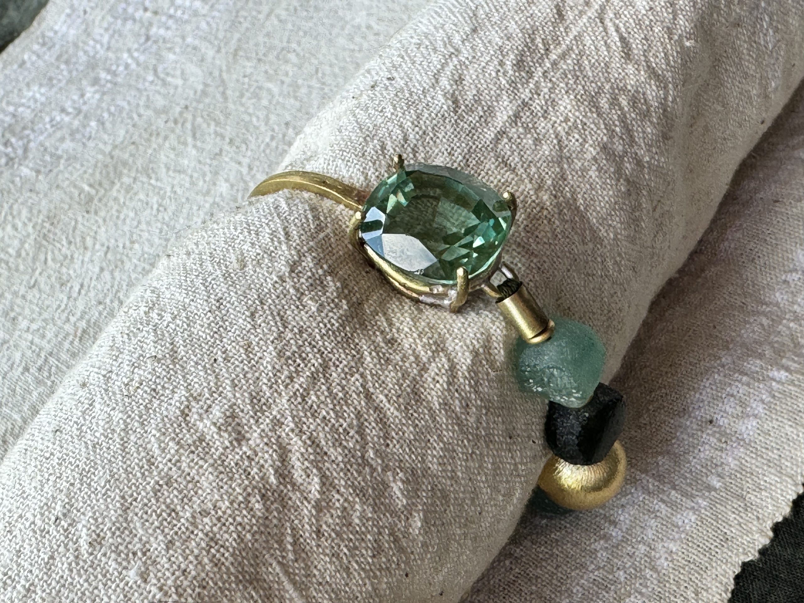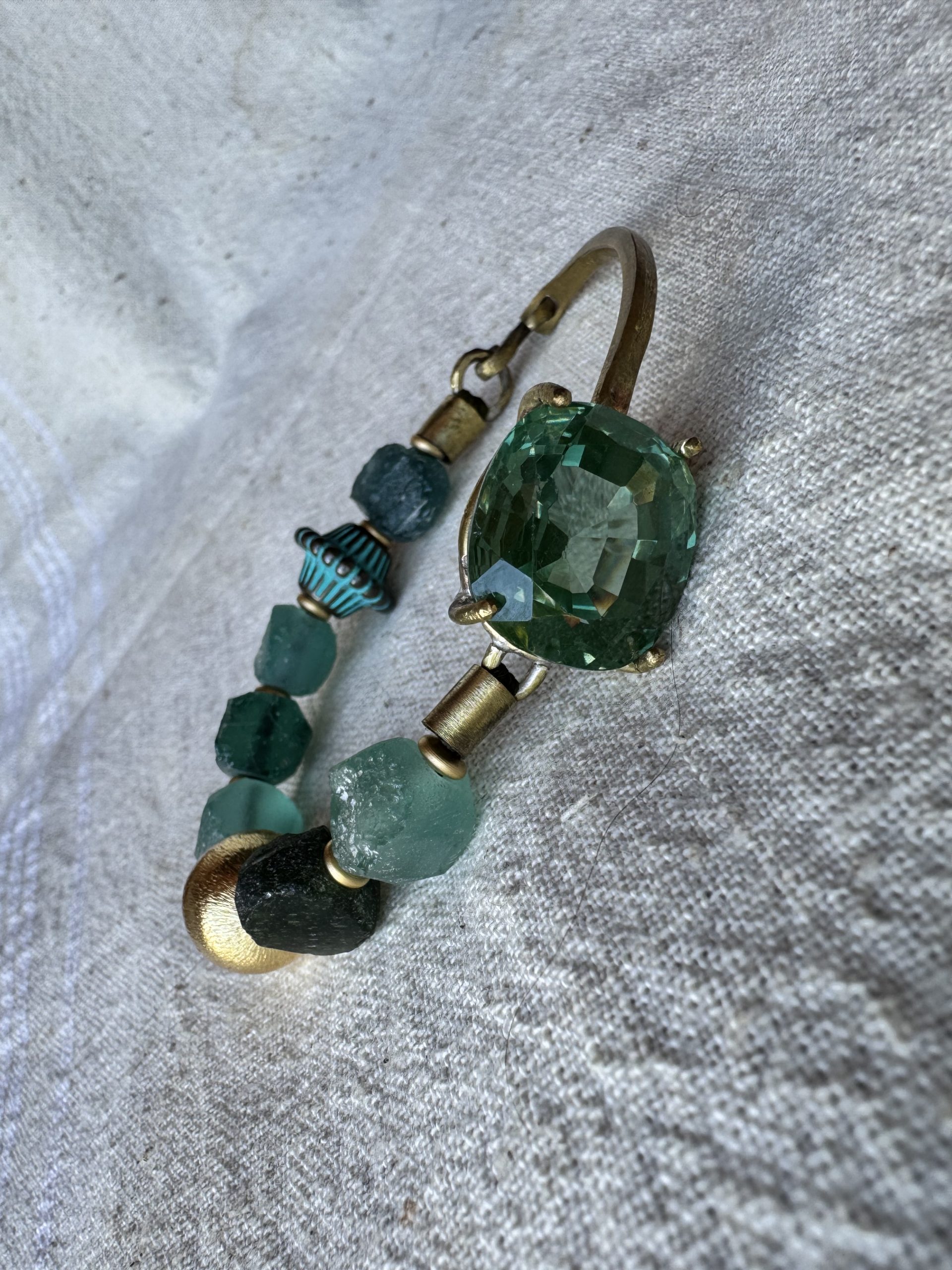 Doğallığın ve zarafetin buluştuğu bu özel bileklik, tamamen özgün bir tasarım anlayışıyla hazırlanmıştır. Dayanıklı ve estetik bir malzeme olan pirinç kullanılarak üretilen bu parça, hem günlük kullanım hem de özel anlar için şık bir tamamlayıcıdır.